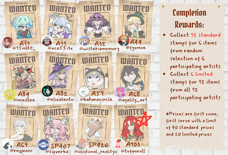 Thank you so much for your interest in playing! Unfortunately we ran out of cards, but you can still play! Just collect the business cards signed by each artist, and return to table A103 to claim your prize. Same rules apply.